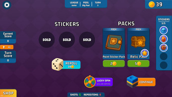 - Stickers: Build your loadout by attaching modifiers to balls — each with unique powers or appearances.