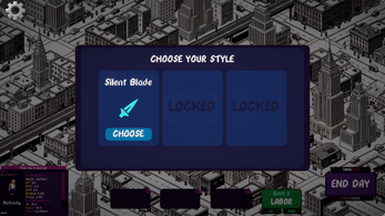 Immerse yourself in a beautifully crafted pixel-art city. The high-contrast black and white world is punctuated by neon UI elements, making every upgrade and action pop.