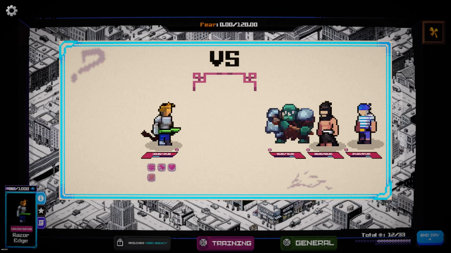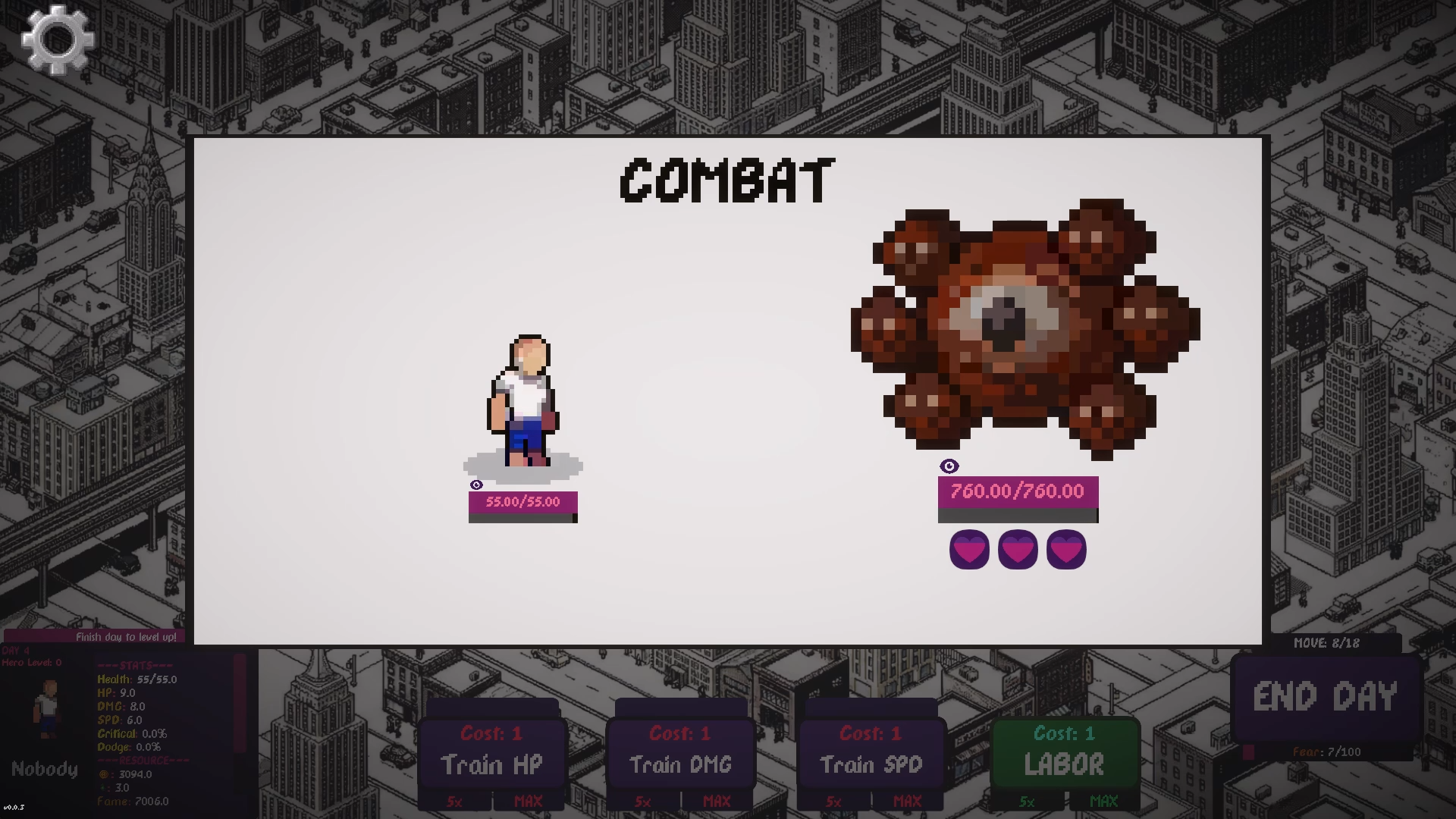 Thank you! I will try to add tutorial for training part. Also, I might add some quick animation like combat panel to understand what is going on when you click, or if it is too much just for training, I may try creating a bubble like Punch Club and move it to hero.