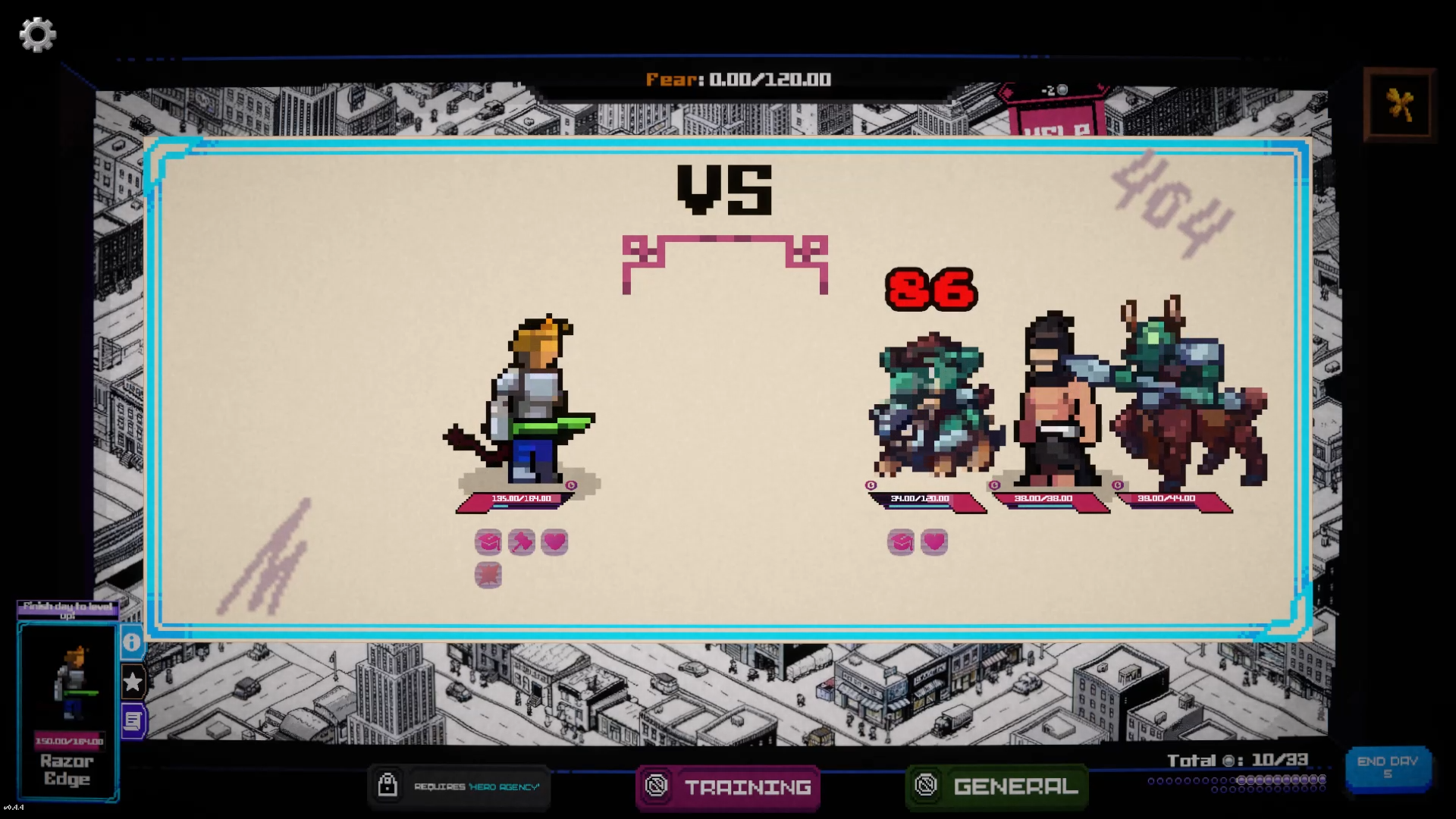 Every enemy you fail to defeat increases the city's >b class="BB_Bold _3cln317VYhwhE1fSeMCG48">Fear. If the Fear Meter fills up, the city collapses into panic, and your career is over.
